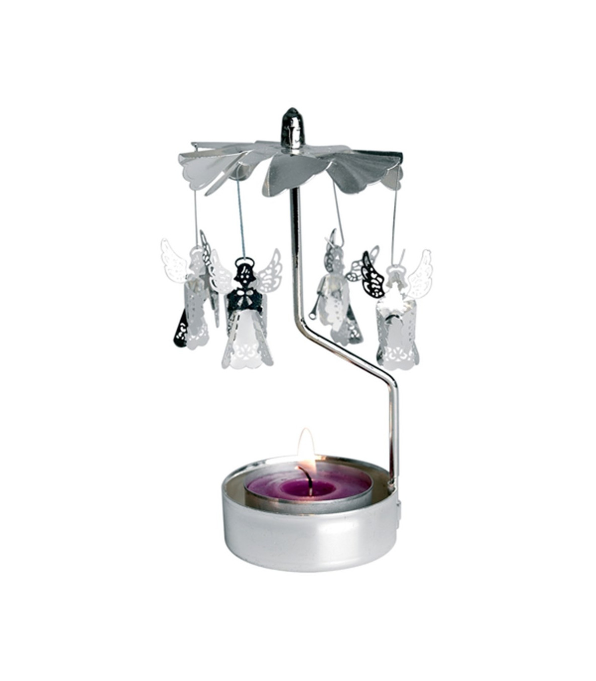 Tento krásny svietnik s anjelikmi vám dokonale poslúži nielen na Vianoce. Ide o vkusnú dekoráciu, ktorá doslova rozžiari váš domov. Kovový svietnik je ozdobený drobnými anjelikmi, ktorí sa točia nad zapálenou sviečkou. Stačí zapáliť akúkoľvek čajovú sviečku a môžete relaxovať a užívať si tú krásu. Tento darček navodi veľmi príjemnú a uvoľnenú atmosféru.