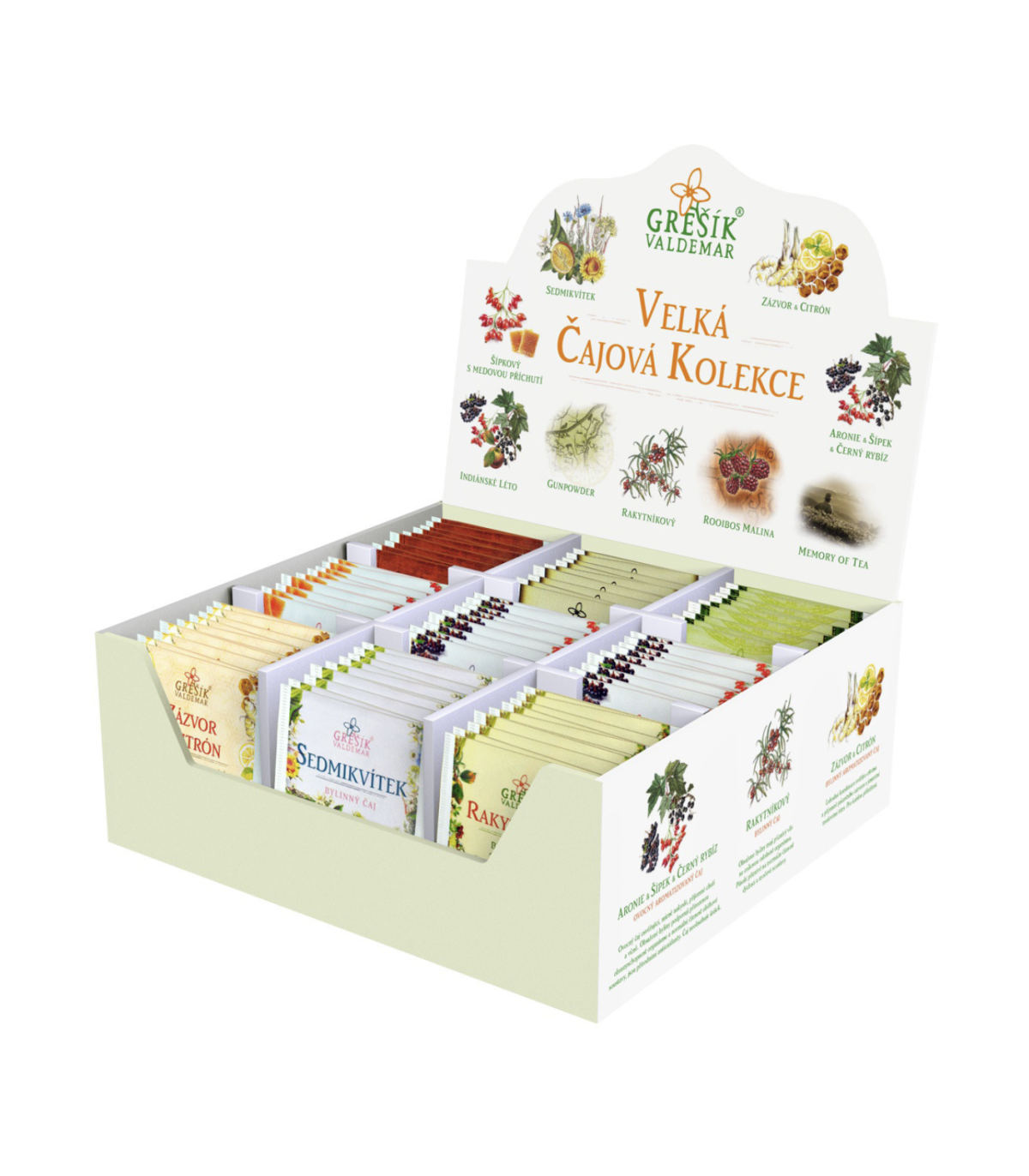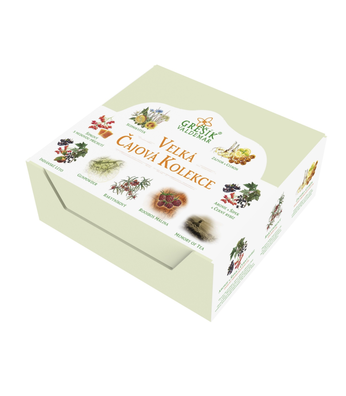 Kolekcia obsahuje 9 druhov čajov: Zázvor, citrón a med, Sedemkvietok, Rakytníkový, Aronia, šípka a čierne ríbezle, Indiánske leto, Rooibos Malina, Šípkový čaj s medom, Memor of Tea a Gunpowder.