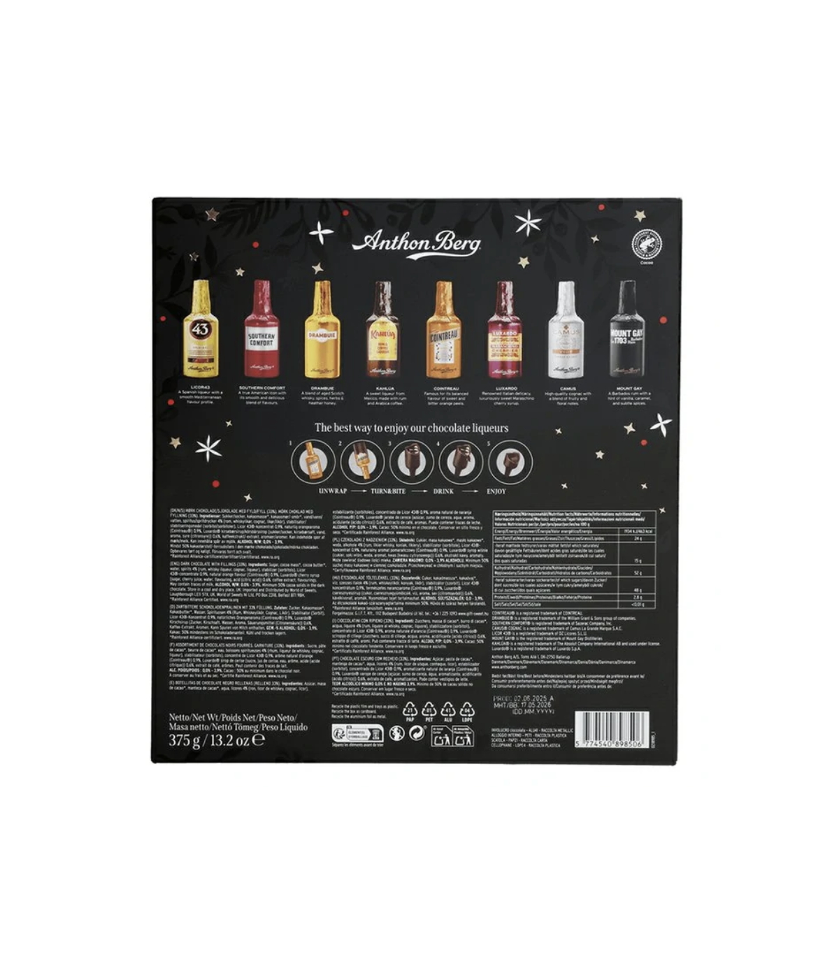 Elegantný adventný kalendár pre mužov s alkoholom obsahuje 24 čokoládových fľaštičiek so svetovými likérmi. Kalendár Anthon Berg je vhodný ako darček pre mužov v predvianočnom čase.