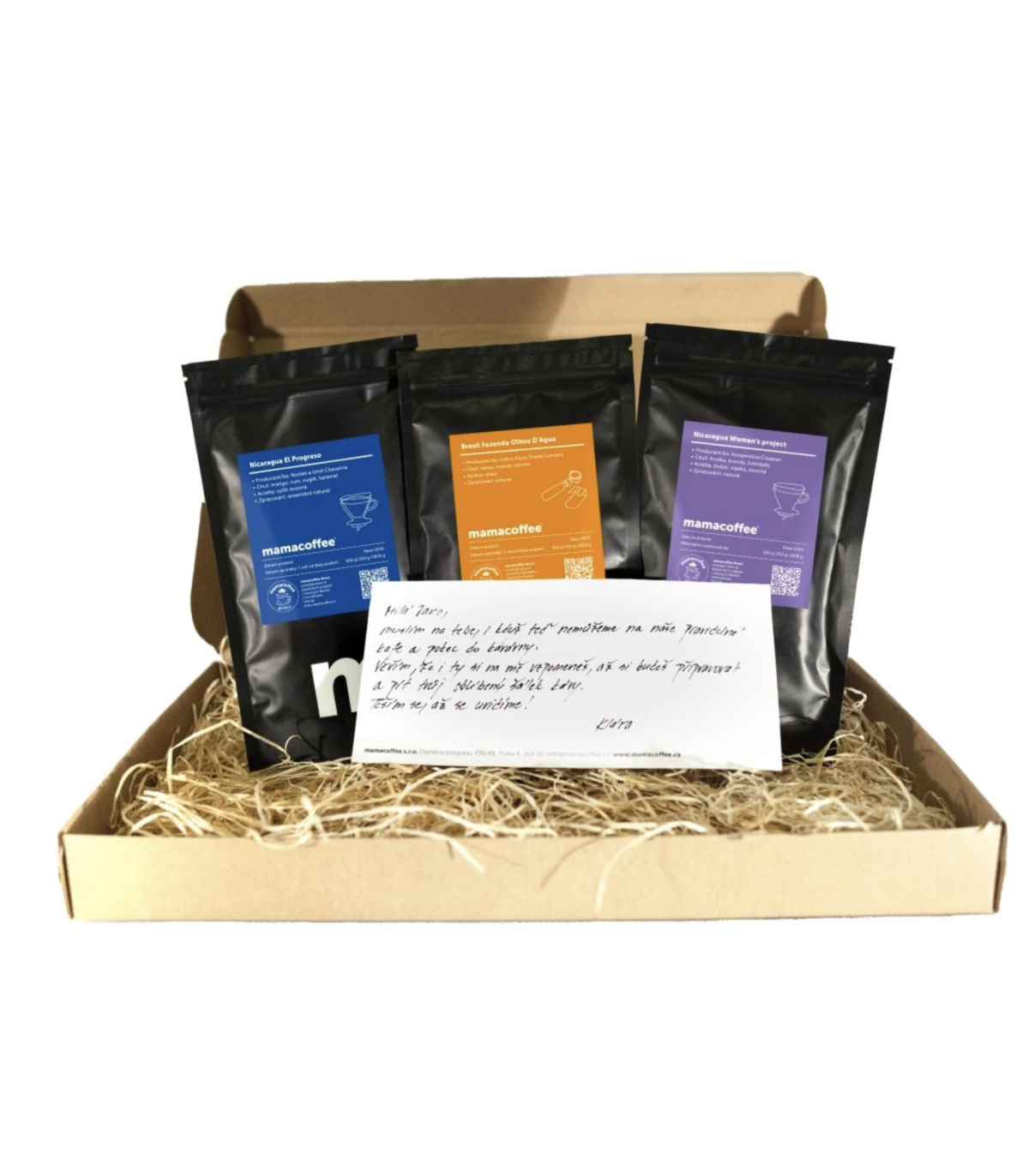 Chystáte sa navštíviť rodičov a chcete ich niečím prekvapiť? Čo tak touto degustačnou súpravou troch káv, ktorá obsahuje kávu z Brazílie, Ugandy a Nicaragui. Tieto kávové plantáže sú výnimočné a chuť kávy to len dokazuje. Mamacoffee prináša kávu, ktorá má jedinečnú chuť a arómu. Vychutnajte si ju so svojimi blízkymi. Nie je nad šálku dobrej kávy, ku ktorej si môžete dať napríklad ten vynikajúci koláčik, ktorý babička upiekla špeciálne pre vás.
