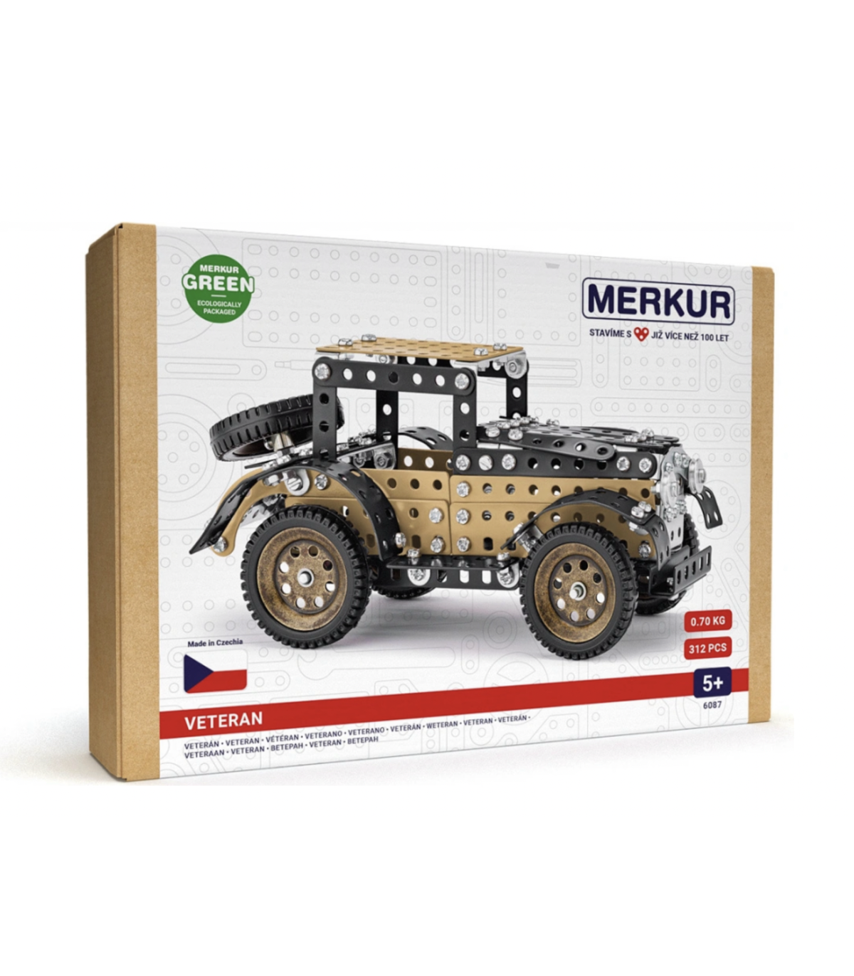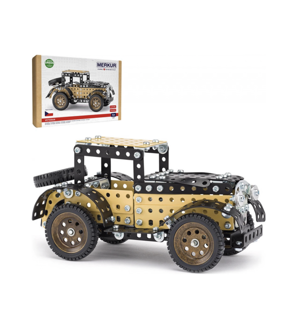 Táto tradičná česká stavebnica je ako stvorená pre všetkých, ktorí sa radi hrajú, tvoria a spomínajú. Merkur - Veterán obsahuje 312 kovových dielikov, z ktorých si môžete postaviť elegantný historický automobil. Vďaka skrutkám, matičkám a priloženému náradiu ponúka radosť z poctivej práce rukami, tak ako kedysi.