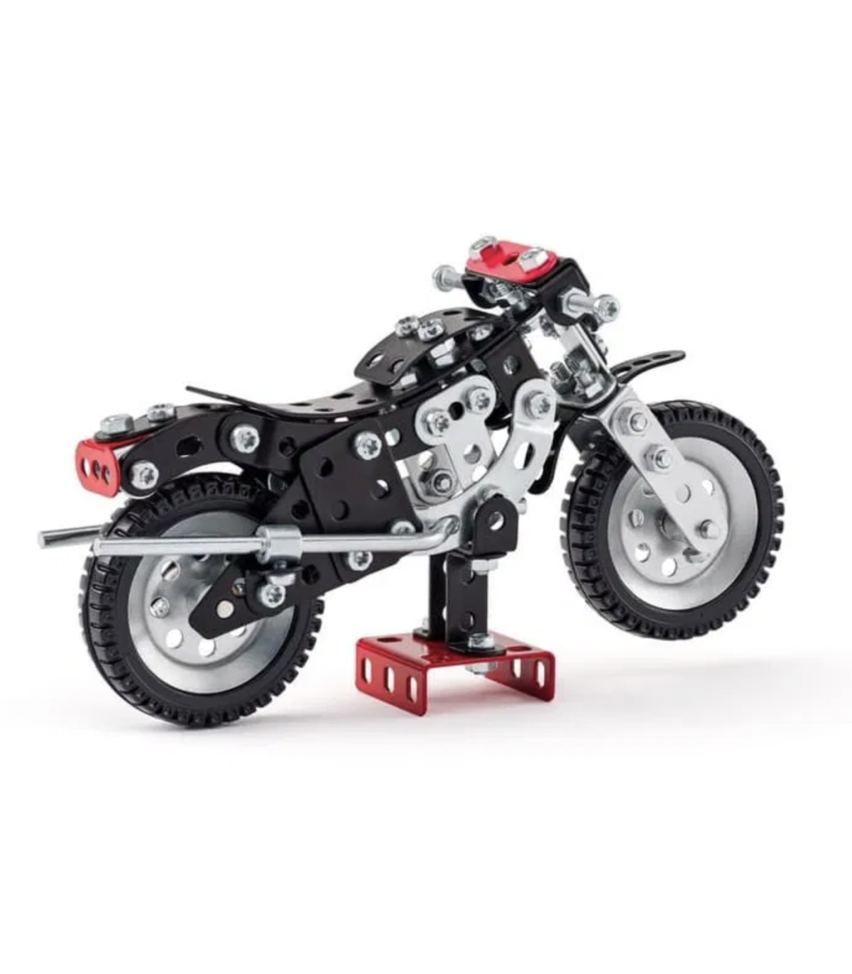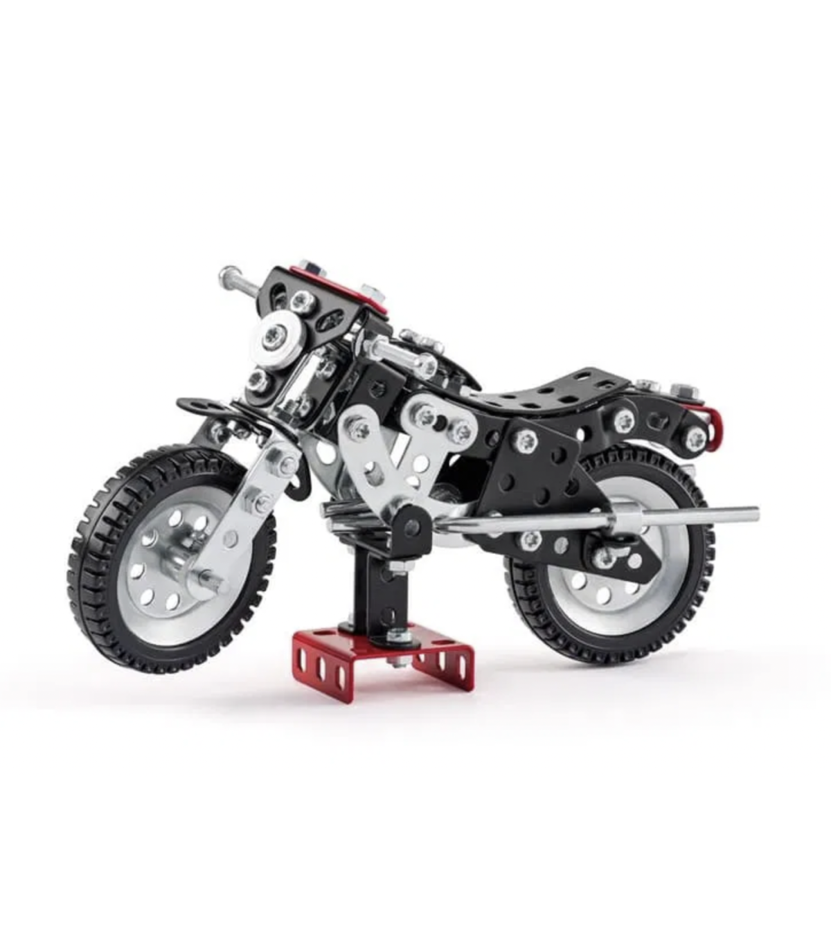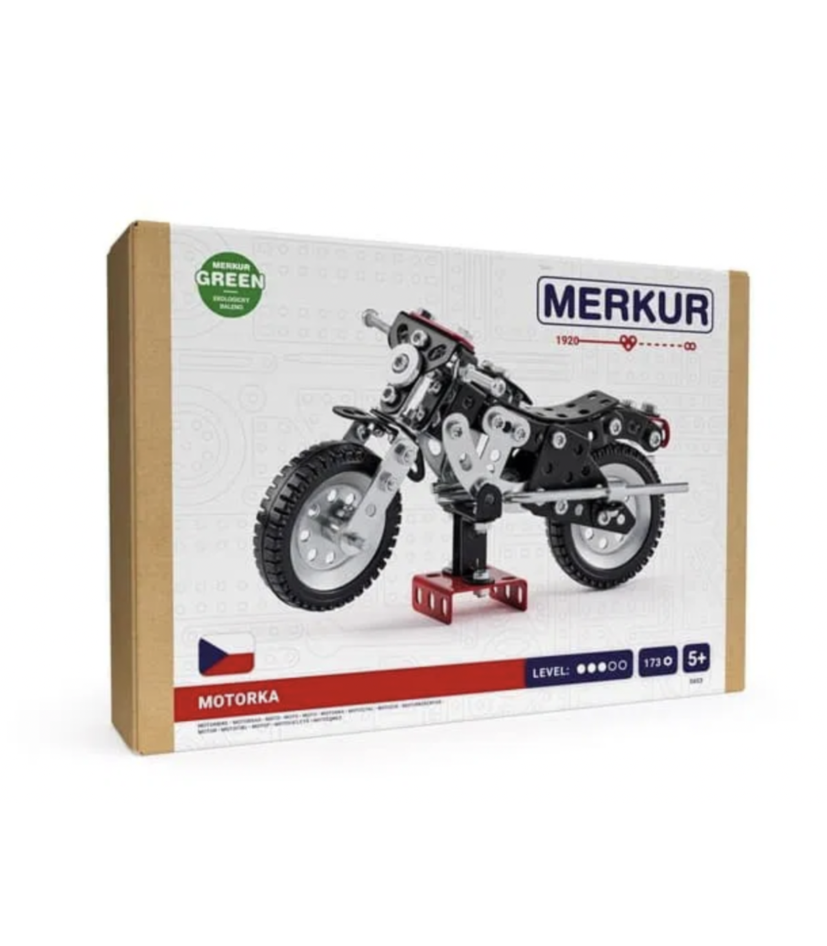 Stavebnica Merkur - motorka je krásny retro darček, ktorý poteší každého dedka. Táto tradičná česká kovová stavebnica ponúka možnosť zostaviť si detailný model motocykla pomocou skrutiek, matičiek a priloženého náradia. Skladanie rozvíja jemnú motoriku, trpezlivosť a technické myslenie, zároveň ale prináša radosť z tvorenia a príjemnej spomienky na detstvo.