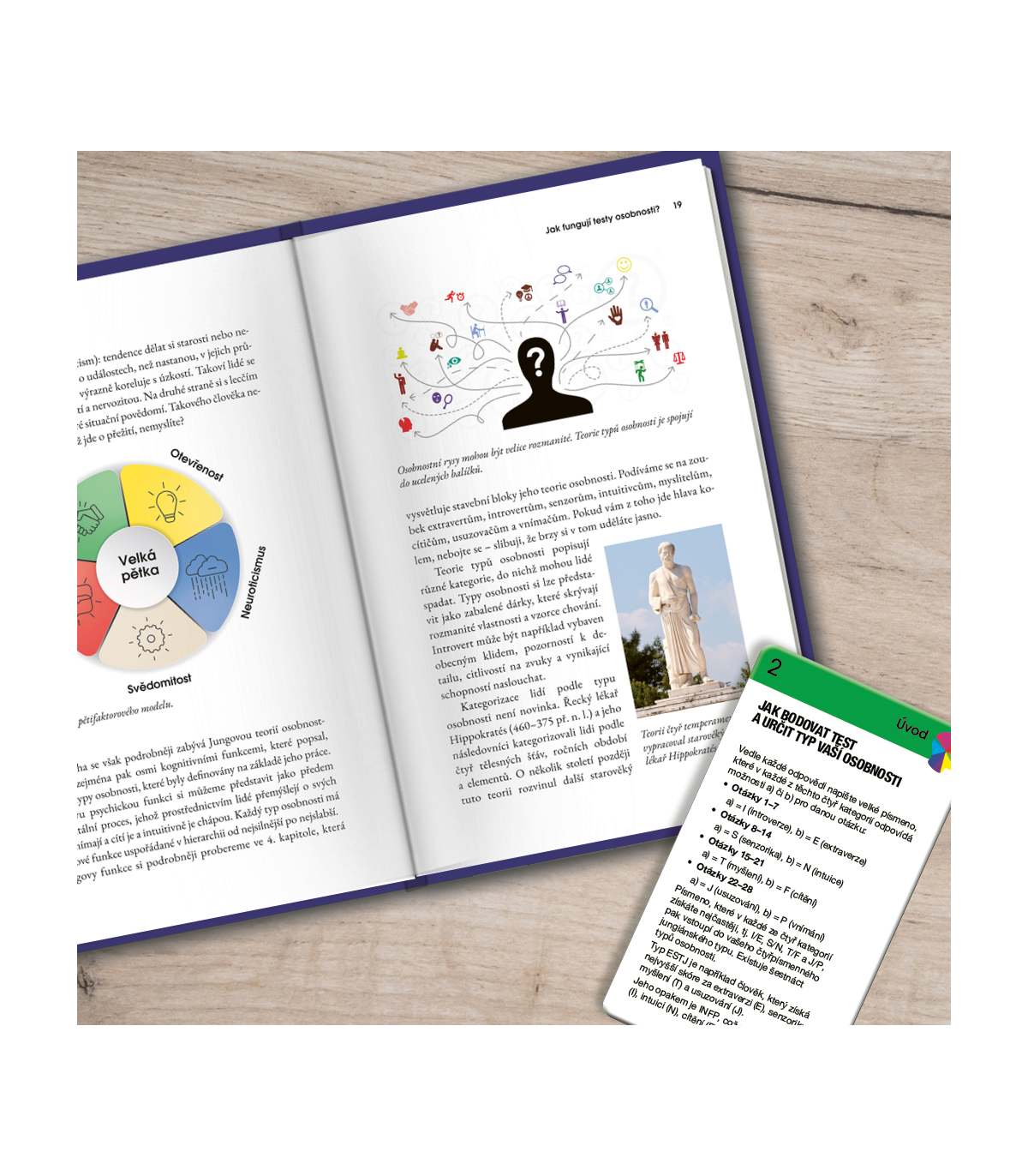 Jungove prelomové myšlienky o introverzii, extraverzii a ďalších osobnostných rysoch sú dodnes základným kameňom sebapoznania a stáli pri zrode slávneho testu osobnosti MBTI. Táto súprava obsahuje 52 testovacích kariet a sprievodcu s prehľadným výkladom psychológie osobnosti. Zistíte, kým ste, aký ste osobnostný typ a ako túto znalosť využiť vo vzťahoch, v práci i každodennom živote. Poznáte svoje silné stránky, pochopíte, čo vás formuje a čo vám bráni dosiahnuť vaše ciele.