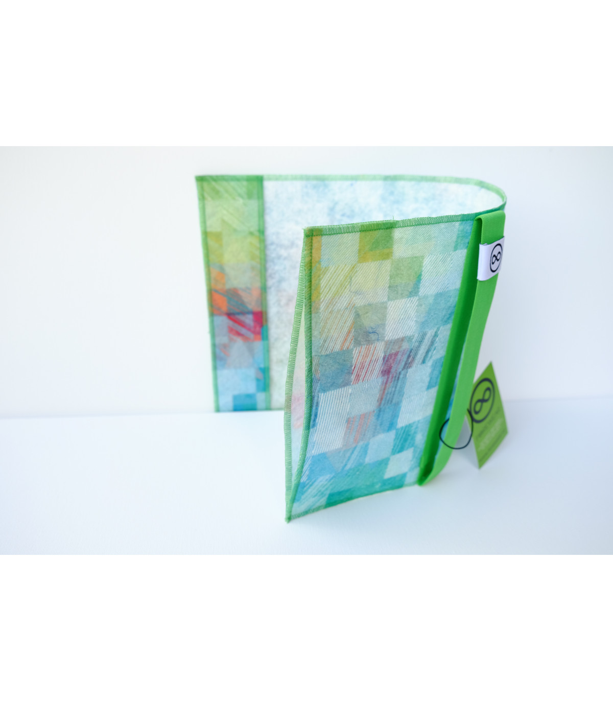 Obal na knihu z recyklovanej textílie o rozmere 50 x 24 cm (rozložený obal).